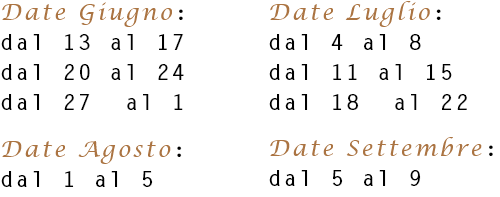 Il centro estivo inizierà alle 8:30 del mattino e si concluderà alle 16:30.