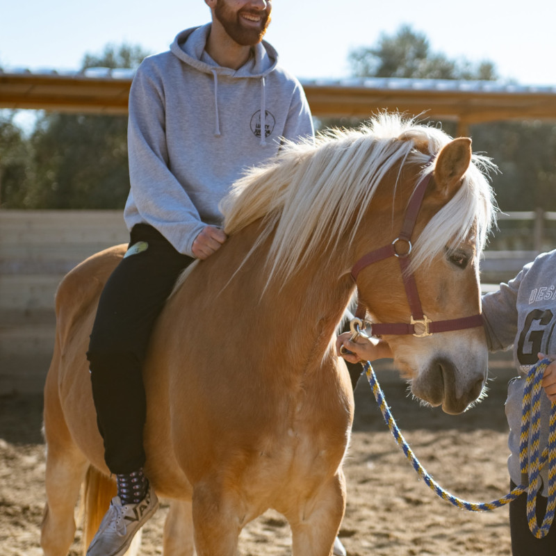 Prevede una serie di attività con i cavalli al mattino, pausa merenda e pranzo al sacco e infine il pomeriggio intrattenimento e piscina.